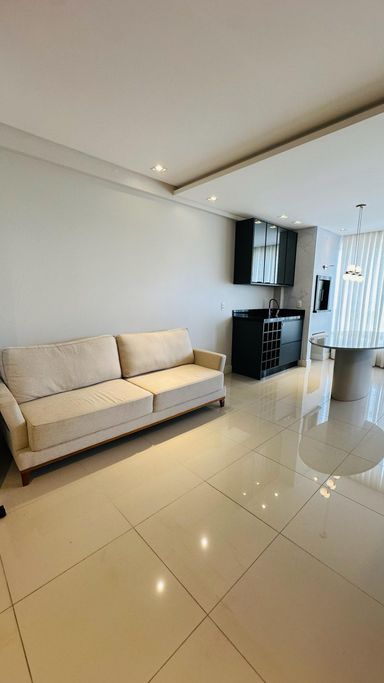 Dependências: Suíte + 02 dormitórios, banheiro social, cozinha, sala de estar\ jantar, área de serviço e 01 vaga de garagem que comporta 02 carros lado a lado. Acabamento alto padrão: Aquecimento a gás, teto rebaixado em gesso, massa corrida, porcelanato, hidrômetro individual e portas laqueadas. O Residencial possui elevador, salão de festas mobiliado, infraestrutura para instalação de energia solar e hall de entrada mobiliado. Semi mobilhado. Valor: R$ 850.000,00.