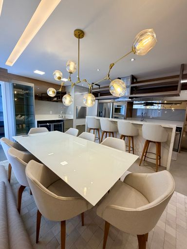 Dependências: 1 suíte com closet + 2 suítes, living com ampla sala de estar, sacada integrada com churrasqueira, sala de jantar e cozinha integrada, lavabo, área de serviço e 4 vagas de garagens. Finamente mobiliado, ficam todos os móveis e decorações. Empreendimento: Hall de entrada, sala de jogos, brinquedoteca, academia, amplo salão de festas, piscina, vestiários e amplo espaço externo. São apenas dois apartamentos por andar. Valor: R$ 1.950.000,00.