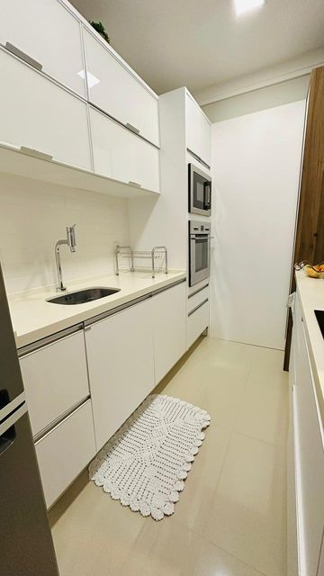 Dependências: 02 Suítes, lavabo, living integrado, área de serviço e churrasqueira a carvão. Vaga simples, com opção de vaga dupla (gaveta ou lado a lado). Diferencias e acabamentos: Porta de entrada com fechadura biométrica, rebaixo em gesso em todo o apto, portas laqueadas, cortineiros nas suítes e sala de jantar, fechamento tipo reiki na sala de jantar, piso vinílico nos dormitórios e porcelanato acetinado nas áreas sociais. Empreendimento: São 14 pavimentos (04 aptos por andar); 02 elevadores; lajes com manta acústica; área de lazer no rooftop (decorada e mobiliada), com salão de festas, academia e piscina; medidores individuais e sistema de energia solar para áreas comuns. Entrega: Dezembro/2027 Registro de Incorporação: 107.356 Unidades à partir de: R$ 609.900,00