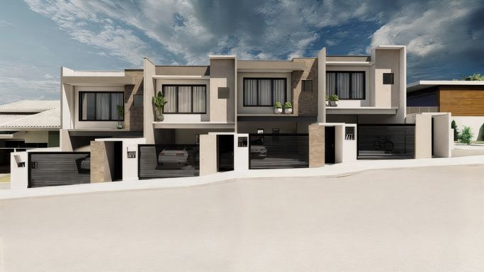 Dependências: Piso superior composto por suíte master com sacada + 02 suítes. Piso inferior composto por living integrado contendo sala de estar/jantar e cozinha, lavabo, área de serviço, churrasqueira e 02 vagas de garagem. Acabamentos: Massa corrida, porcelanato nas áreas sociais e piso vinilico nas áreas intimas. Valor: Unidades a partir de R$ 950.000,00