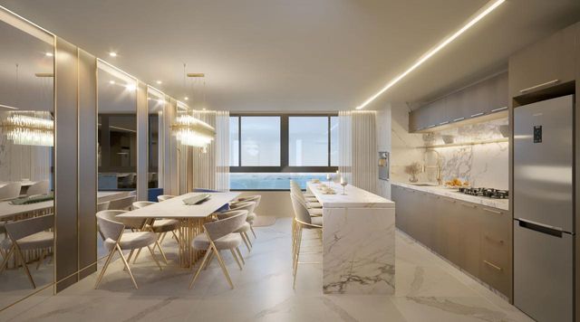 Características do Empreendimento: Bar, gerador, sala de jogos, salão de festas, piscina, quadra esportiva, espaço gourmet, espaço fitness, portaria 24h, medidores individuais, captação de água, portão eletrônico, playground, brinquedoteca, automação predial, piscina infantil, bicicletário, câmeras de segurança, gás central, 02 elevadores, pet place, deck molhado, solarium, espaço zen, entrada para banhistas, box de praia, hall decorado e mobiliado, infra para veículos elétricos, lounge, acessibilidade para pne e acessos com identificação facial.