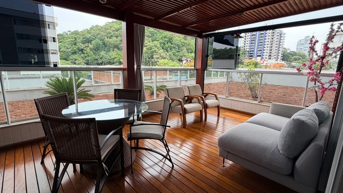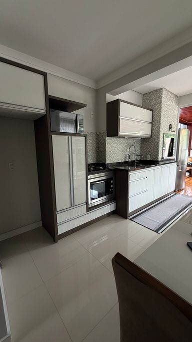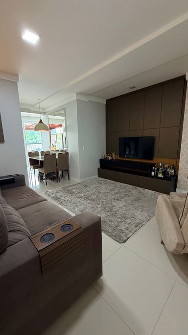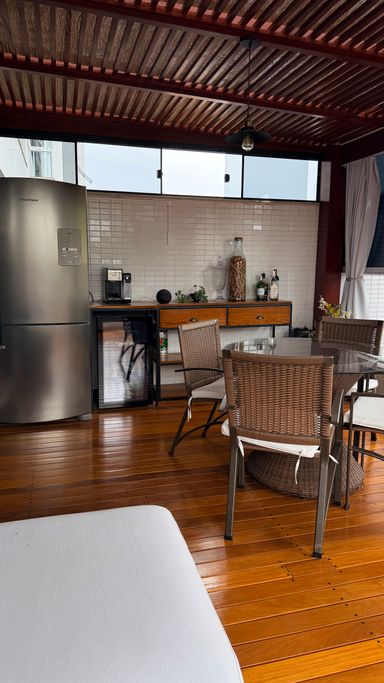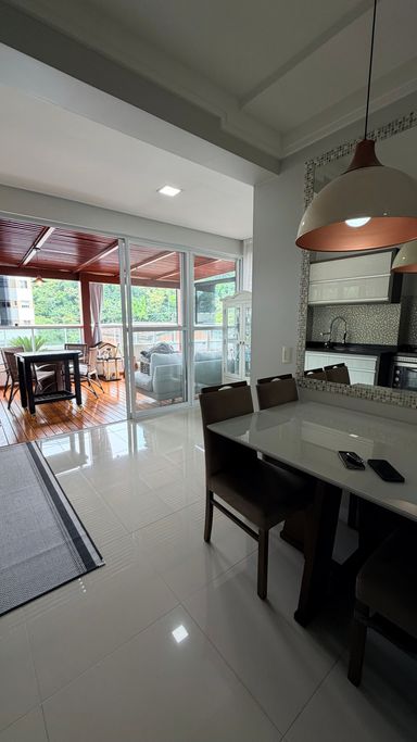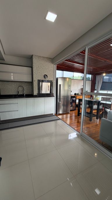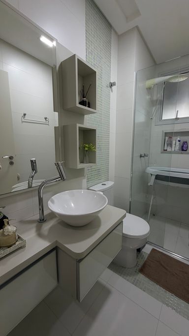 Dependências: Suíte + dormitório, banheiro social, sala de jantar/estar, cozinha, área de serviço, sacada com churrasqueira e 02 vagas de garagem.
