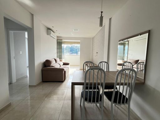 Dependências: 02 dormitórios, banheiro social, cozinha, sala de estar/jantar integradas, sacada com churrasqueira, área de serviço e 01 vaga de garagem. Apartamento mobiliado.