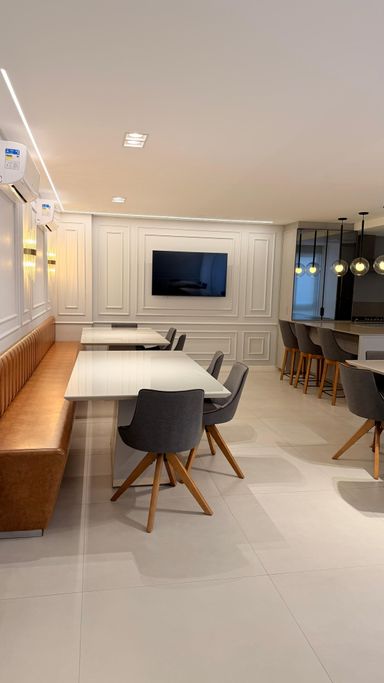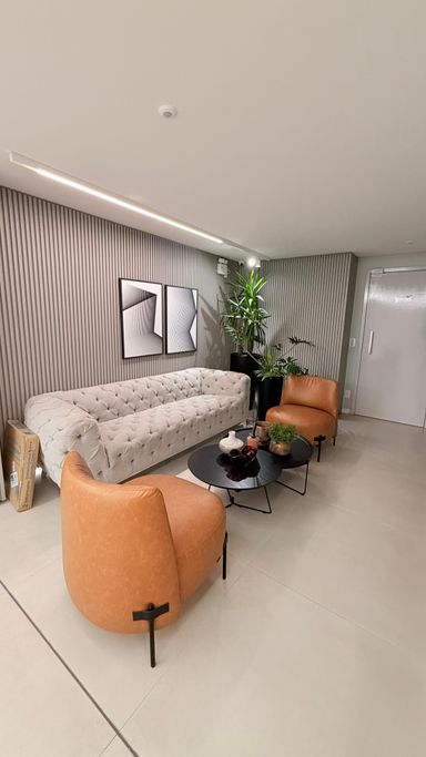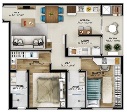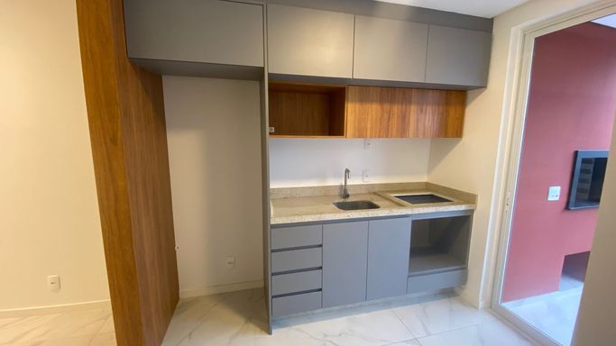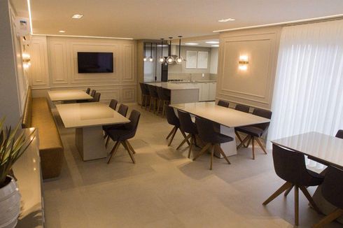 Dependências: Suíte + 01 dormitório, sala de estar/jantar, área de serviço, cozinha, banheiro social, sacada com churrasqueira e 02 vagas de garagem.