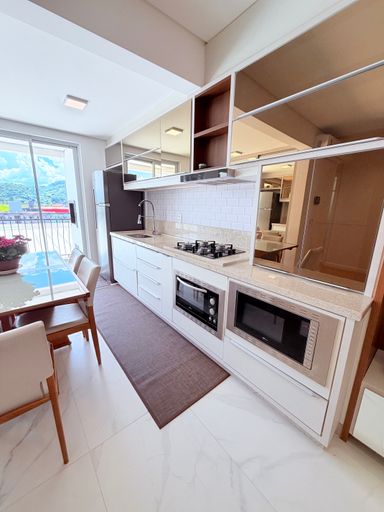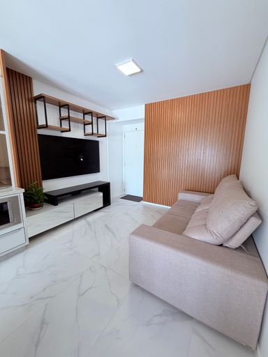 Características: 02 dormitórios, banheiro social, sala de estar/jantar, cozinha, área de serviço, sacada com churrasqueira e vaga de garagem.