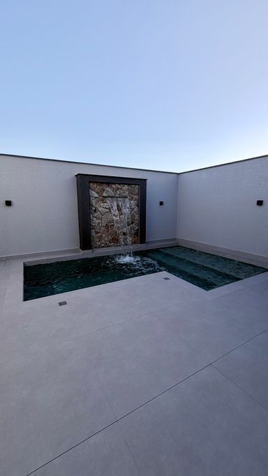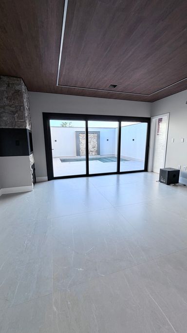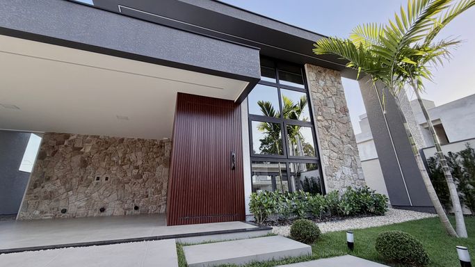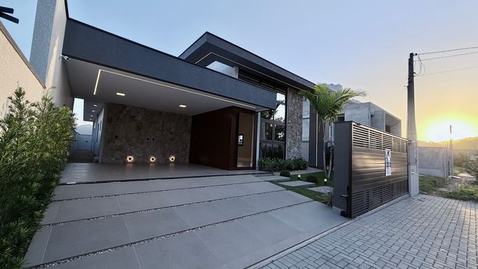 Acabamentos: Energia solar com 12 placas, automação residencial completa considerando: venezianas janelas, toda parte sistema da piscina, sistema som no forro da churrasqueira, monitoramento e segurança da casa, iluminação, acesso pedestre e veículos, banheiros com revestimentos portinari e eline, área vivência revestimento delta 1,20x1,20, área íntima em vinílio, parte externa toda projetada com tinta borracha líquida, jardinagem, espera pra carregamento elétrico veículos, piscina com tela armada e já com aquecedor, com 4 bombas individuais para cascata, tratamento, hidro, cloro ativado, iluminação interna e externa, teclas e espelhos linha refinato weg, teclas automação weg, portas internas trada, porta externa alumínio com fechadura inteligente, esquadrias pvc primus e 06 câmeras externas com gravador.