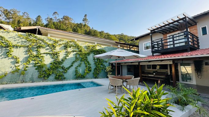 Dependências: Piso superior composto por suíte com banheira + 02 dormitórios; banheiro social e home office com sacada, proporcionando um ambiente inspirador com vista para piscina.