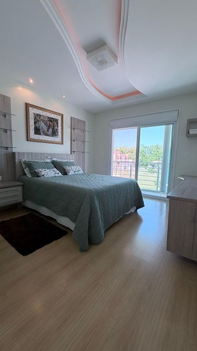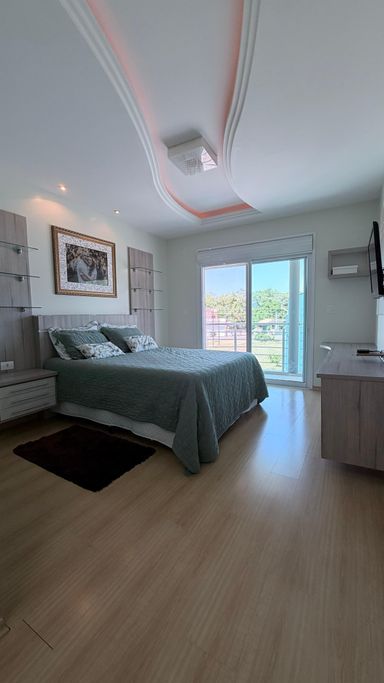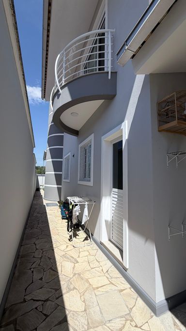 Dependências: Piso superior composto por 03 dormitórios ambos com varanda sendo uma suíte com closet.