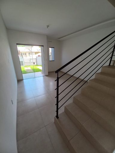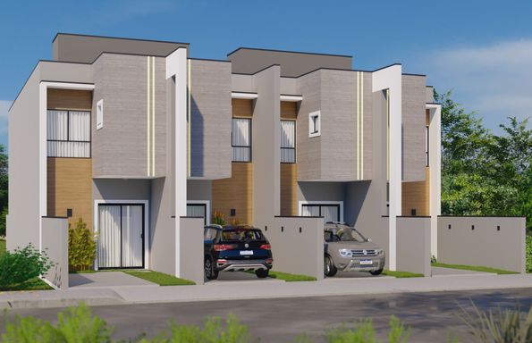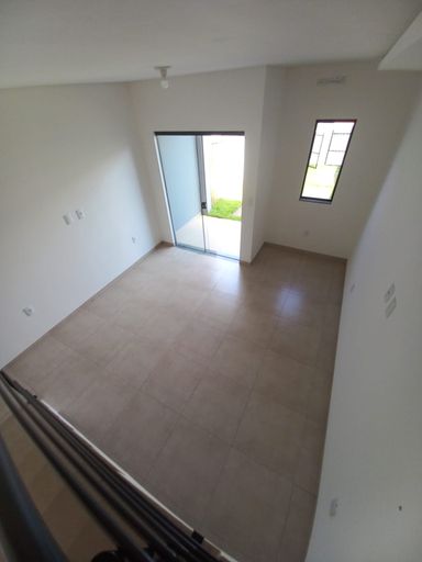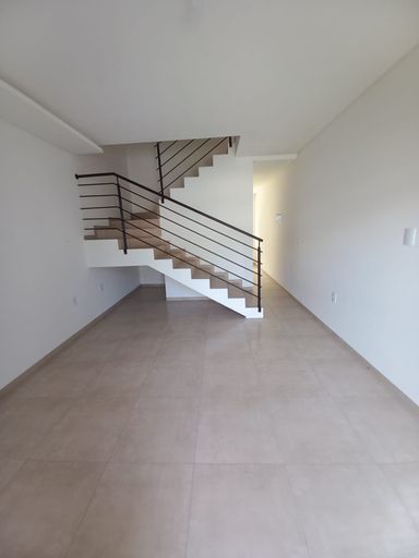 Piso inferior composto por sala de estar, cozinha, lavabo, área de serviço, área externa nos fundos e 02 vagas de garagem.