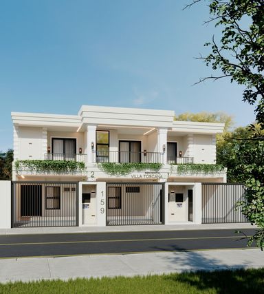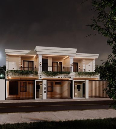 Dependências: Piso inferior composto por sala de estar e jantar, cozinha, área de serviço, lavabo, área gourmet e 02 vagas de garagem.