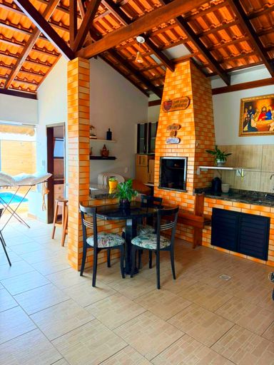 Características: 01 suíte + 02 quartos, 02 banheiros, sala de estar e jantar, cozinha, despensa, área de serviço, mobiliada, armários embutidos, ar-condicionado, box nos banheiros, quintal com gramado, jardim, piscina, churrasqueira, sol da manhã, água individual, gás canalizado, interfone e 02 vagas de garagem.