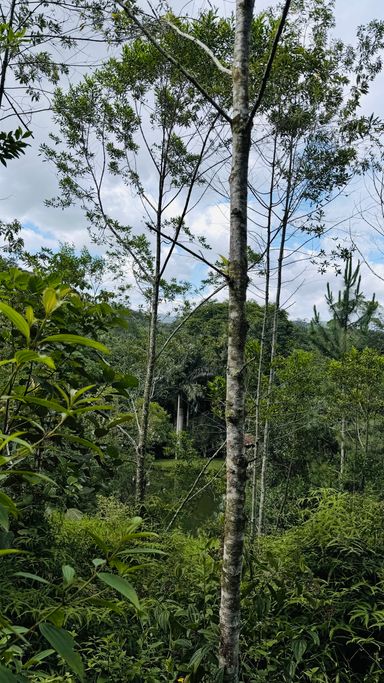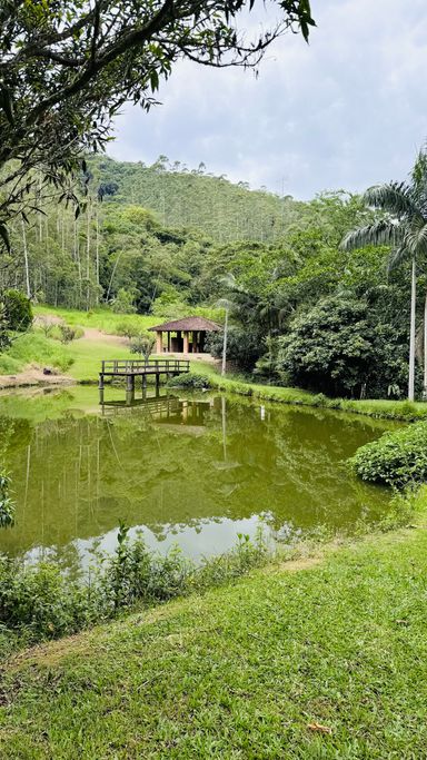 Possui nascente, lagoa, palmeiras, eucalipto, choupana e poço.