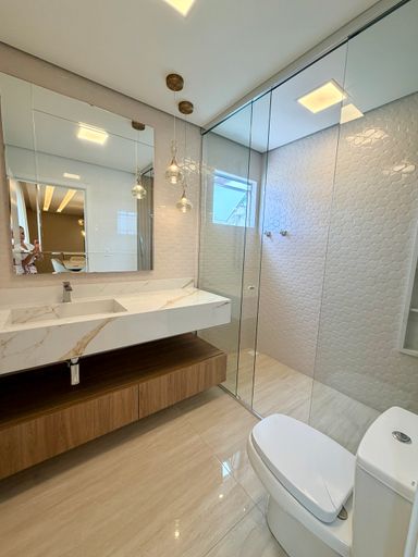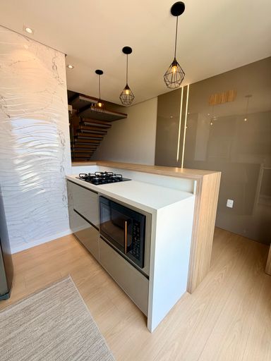 Características: Piso inferior possui uma cozinha funcional, sala de estar espaçosa com designer moderno, além de lavabo, duas suítes com acabamentos sofisticados e um terceiro dormitório versátil, ideal para hóspedes ou escritório.