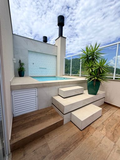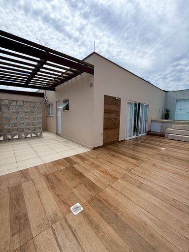 Piso superior conta com área gourmet perfeita para receber visitas, um amplo terraço para momentos ao ar livre e uma jacuzzi que transforma o espaço em um verdadeiro refúgio particular.