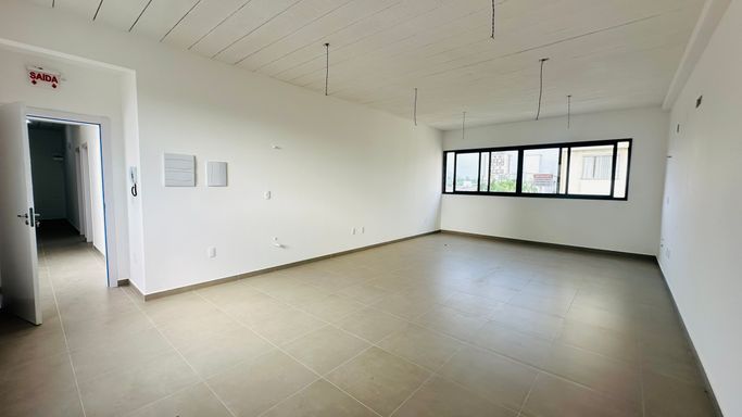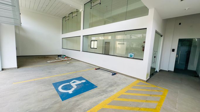 Prédio comercial constituído por 3 pavimentos, com área total construída de 505,74m², sendo: 1º Pavimento (Térreo): 04 vagas de garagem coberta; sala comercial nº 01 de 44,76m² e sala comercial nº 02 de 46,37m², ambas com banheiro interno.