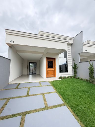 Características: Piso superior composto por suíte + 02 dormitórios e banheiro social. Piso inferior composto por sala de estar/jantar, cozinha, área de serviço, lavabo, área dos fundos com churrasqueira e 02 vagas de garagem. Acabamentos: Porcelanato, piso vinilico nos quartos, rebaixo em gesso , massa corrida, portas branca pintura Uv, preparação pra água quente, preparação para ar condicionado e portão basculante. Entrega: Agosto/2026. Incorporado sob o nº R.8-48.579. Valor: R$ 690.000,00.
