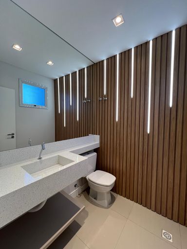 Características: Parte inferior: 03 suítes, lavabo, sala de estar/jantar, cozinha e lavanderia.